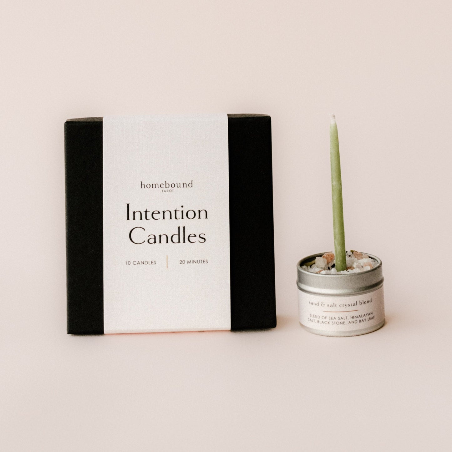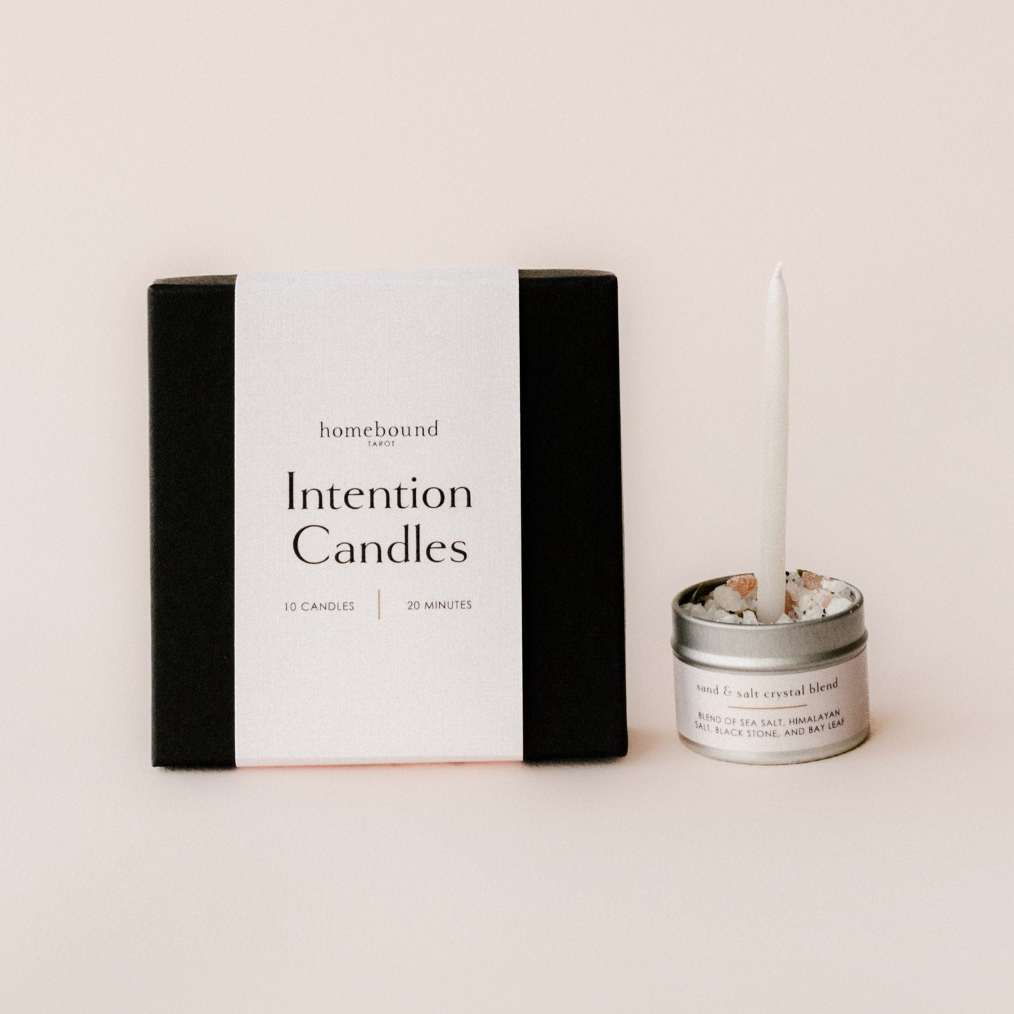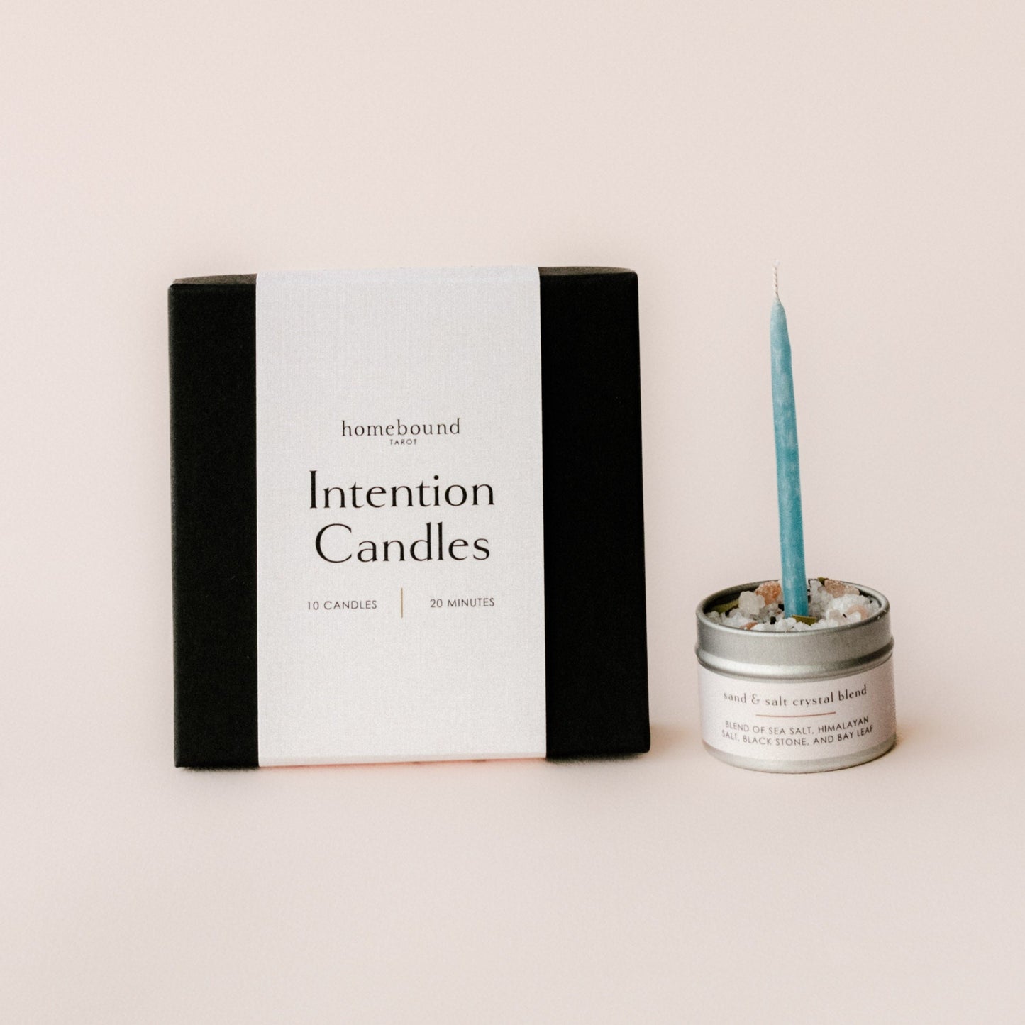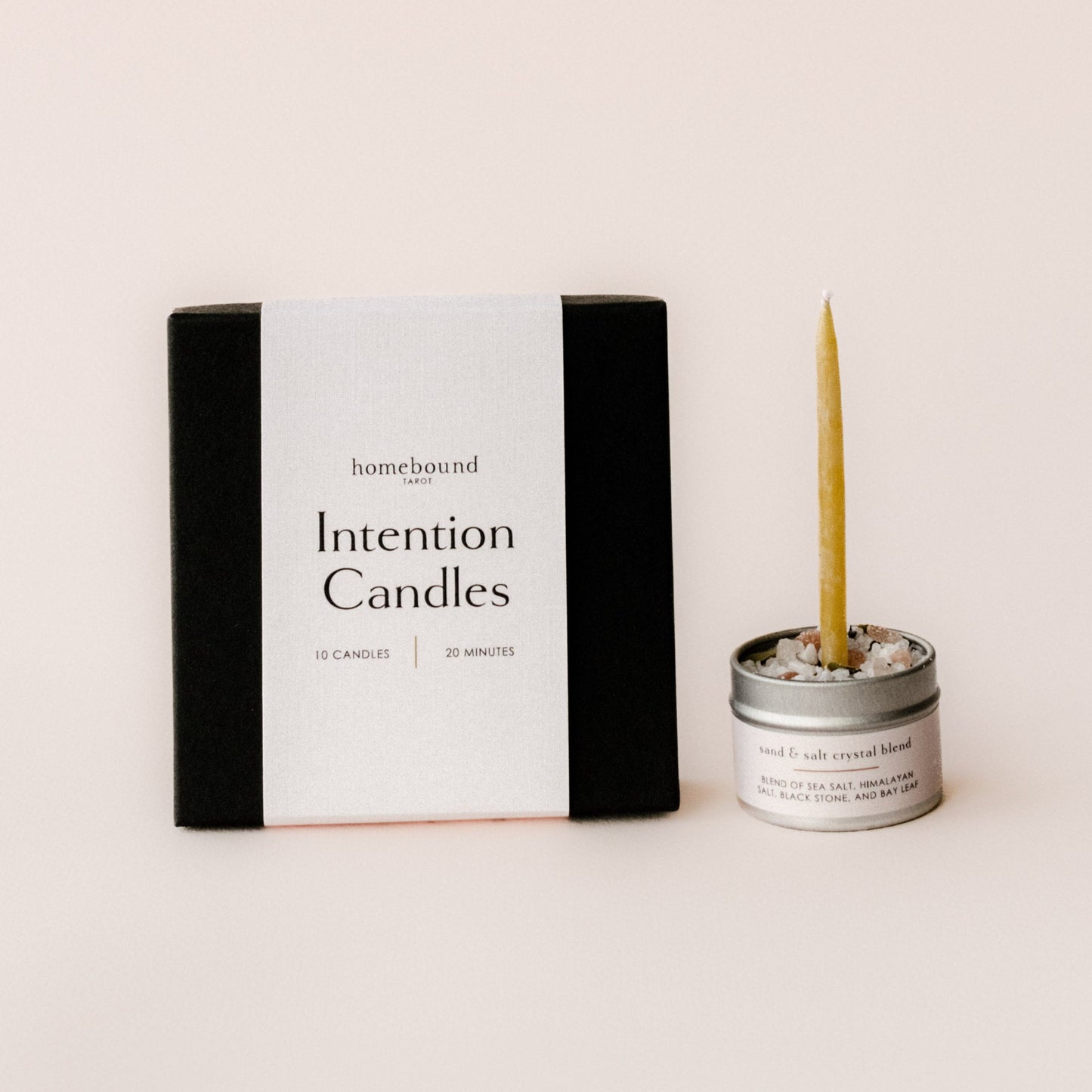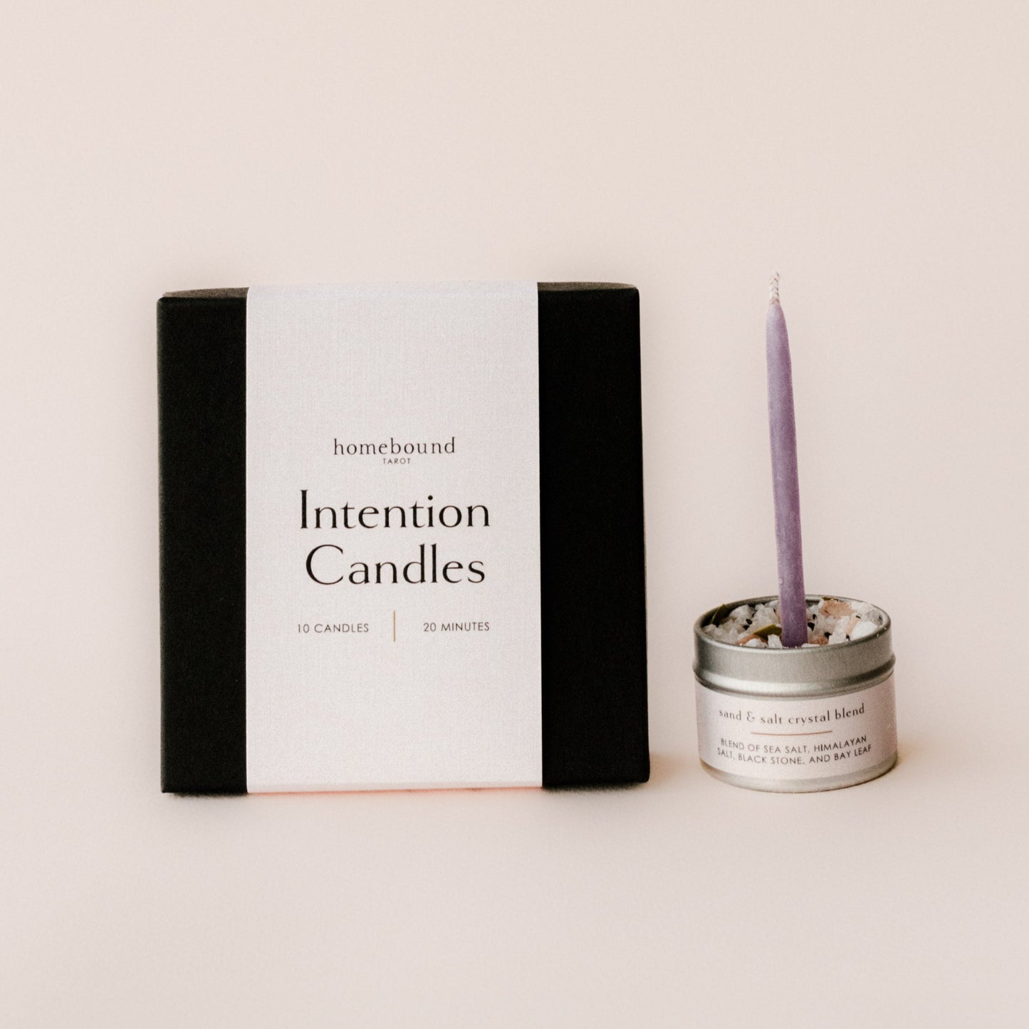 One of the most special aspects of these kits is the salt crystal blend that keeps the candle secure and allows it to burn right down to its end. This carefully mixed blend of salts and is made up of coarse sea salt, Himalayan salt which increases feelings of peace and cleanses the space, black sand, and crushed bay leaves which when burned lift your intentions into the world and calm your mind.