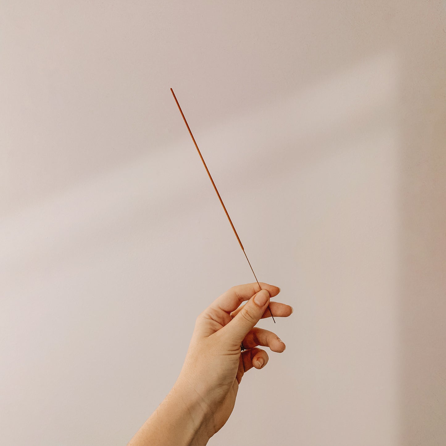 Light the tip of the incense stick and blow out the flame. When the smoke begins to flow, place the end in a holder.