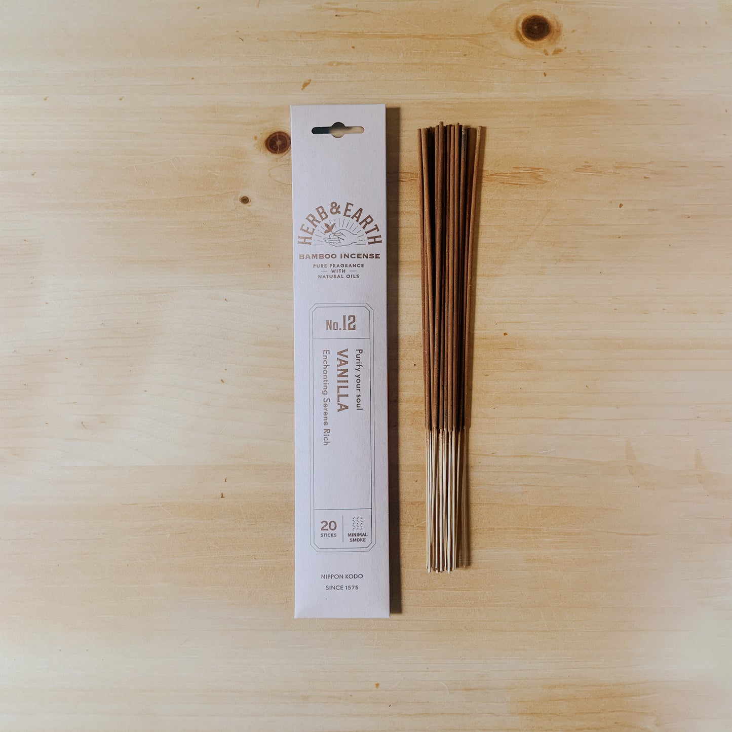 Herb & Earth Incense sticks are made from bamboo, produce minimal smoke, and are free of artificial dyes.